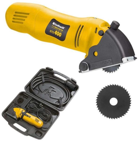 Einhell Bavaria BTS 400 vagy MTS-G 400 Mini kézi körfűrész 5db tárcsával!!!!Fa, lamináltpadló, aluminium, csempe, lágy fém és műanyag vágására. Hálózat 230 V - 50 HzTeljesítmény 400 WÜresj. ford. szám. 8.000/percVágás mélység 12 mm